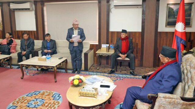 Madhav Nepal submits memorandum to PM Dahal; asks for improving country’s economy
