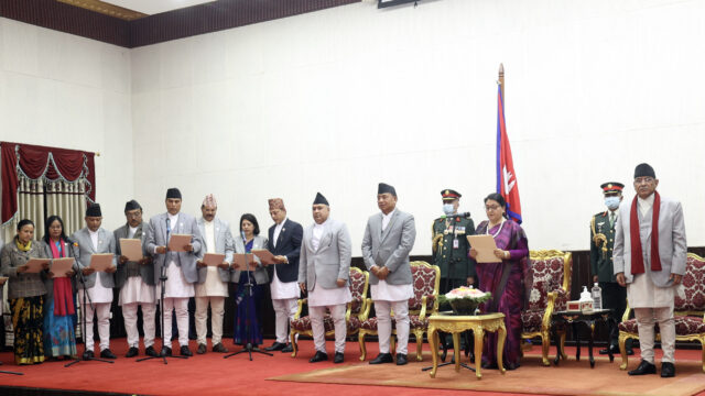KATHMANDU: After taking oath, Rastriya Prajatantra Party (RPP) ministers reached Pashupatinath temple after taking the oath