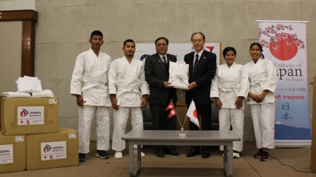 KATHMANDU: Kikuta Yutaka, Ambassador of Japan to Nepal, handed over 240 Judo uniforms to Nepal