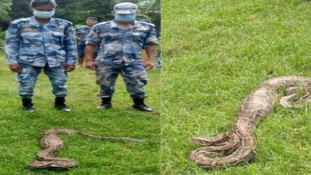 MAHENDRANAGAR: A team of Armed Police Force (APF), Nepal on Sunday rescued a python from